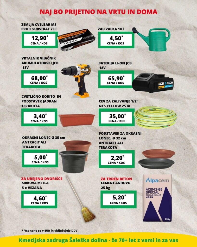 V Kmetijski zadrugi Šaleška dolina smo za vas pripravili akcijsko ponudbo, da se boste prijetno počutili tako na vrtu kot doma.